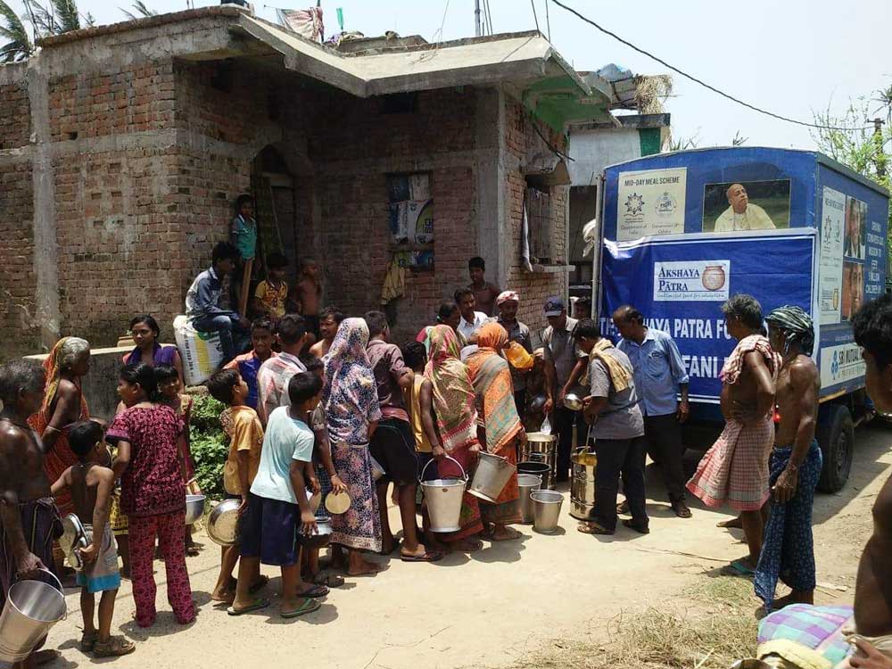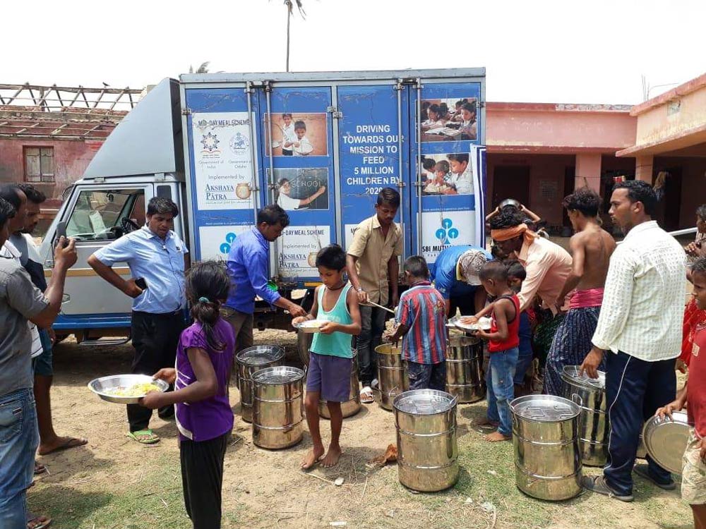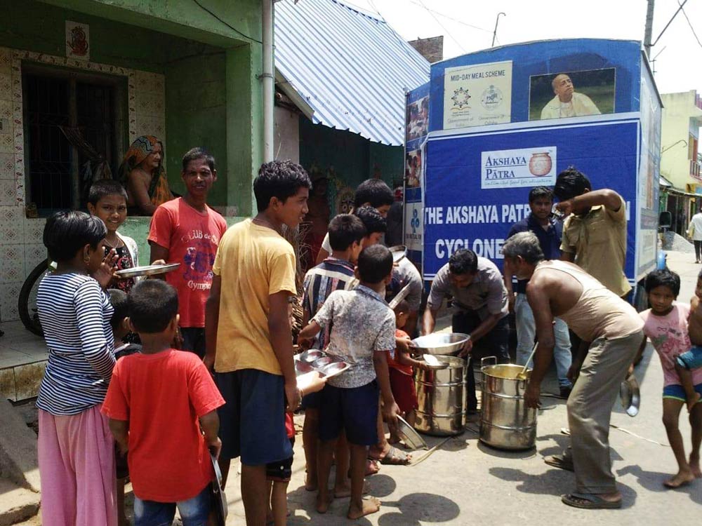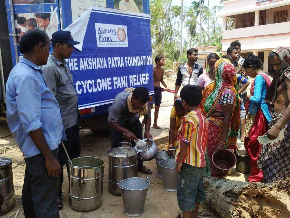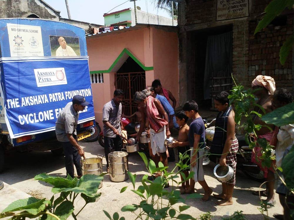 Glimpses of Akshaya Patra’s relief effort in Gujarat where approximately 3-lakh people have been evacuated from low-lying areas of Saurashtra and Kutch due to the oncoming cyclonic storm, Vayu. At the request of the State Government, the Foundation has begun relief efforts, providing meals to 1000 people in Bhavnagar area. The effort will continue until the situation stabilises.