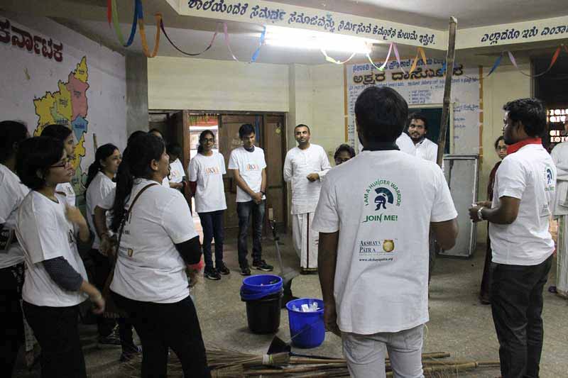 Around 25 enthusiastic young volunteers participated in a cleanliness drive organised by AIKYA, in pursuance of its mission to enhance the quality of school education, promote a culture of ‘Cleanliness and Hygiene’ in schools served by The Akshaya Patra Foundation. The volunteers pledged to take this drive to other schools and get more of their friends to actively work toward a #CleanIndia.