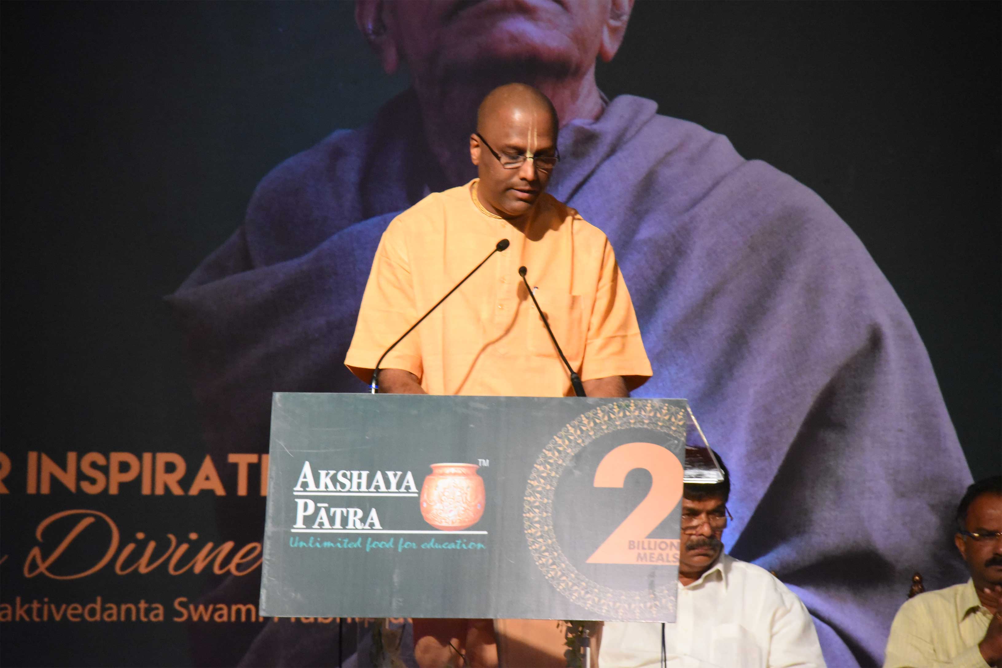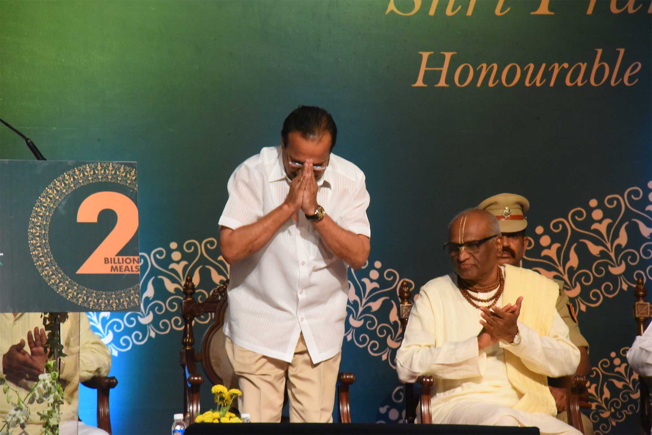 Home > Dignitaries present on stage during the event held to commemorate Akshaya Patra's 2 billion meals