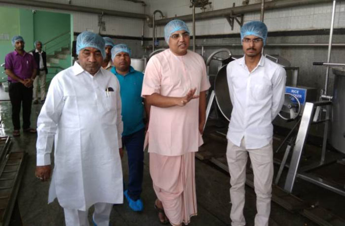 To know the functions of the kitchen, Sri Mukesh Arya Bandhu, Mayor of Nagar Nigam, Mathura-Vrindavan, visits the Akshaya Patra's kitchen at Vrindavan.