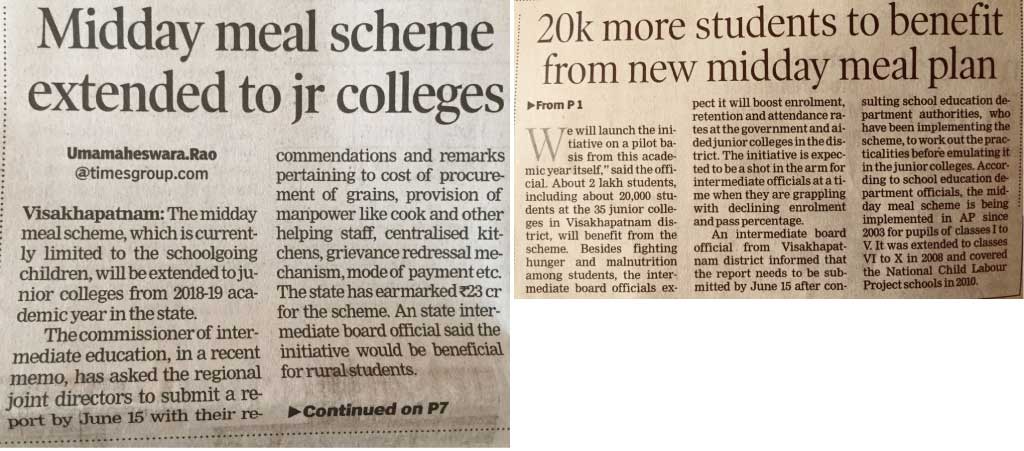 Midday meal scheme extended to jr colleges