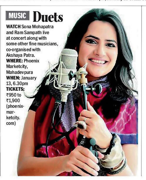 Bangalore Mirror – Chords of Giving - Sona Mohapatra to perform for Akshaya Patra