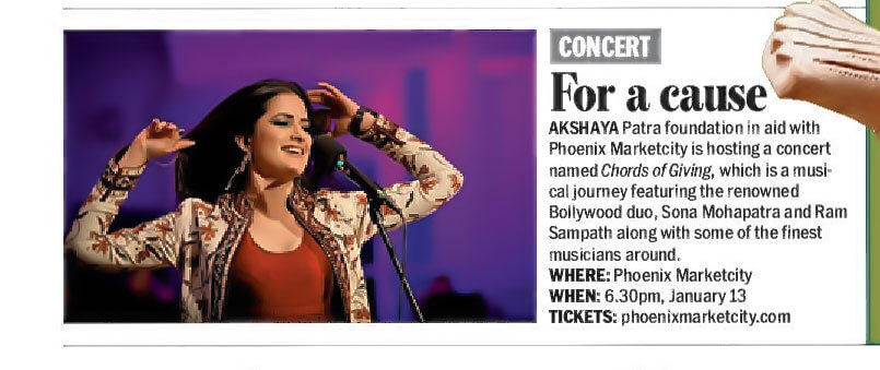Deccan Chronicle – Chords of Giving - Sona Mohapatra to sing for Akshaya Patra