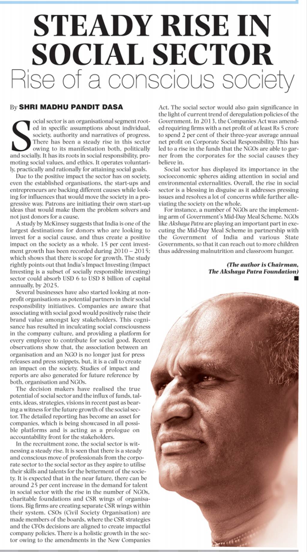 Steady rise in social sector - Rise of a conscious society